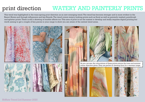 We predicted this trend back in the April print development pack (although it was just emerging so we called it 'watery' prints!) and then saw its continuing build and gave it more prominence in the June pack although we then called it 'watery and painterly' and painterly has become a slightly different print trend in its own right. Whatever you want to call it; blurry, watery, smudgy.... it's definitely a print trend you need to be developing into if you haven't already!